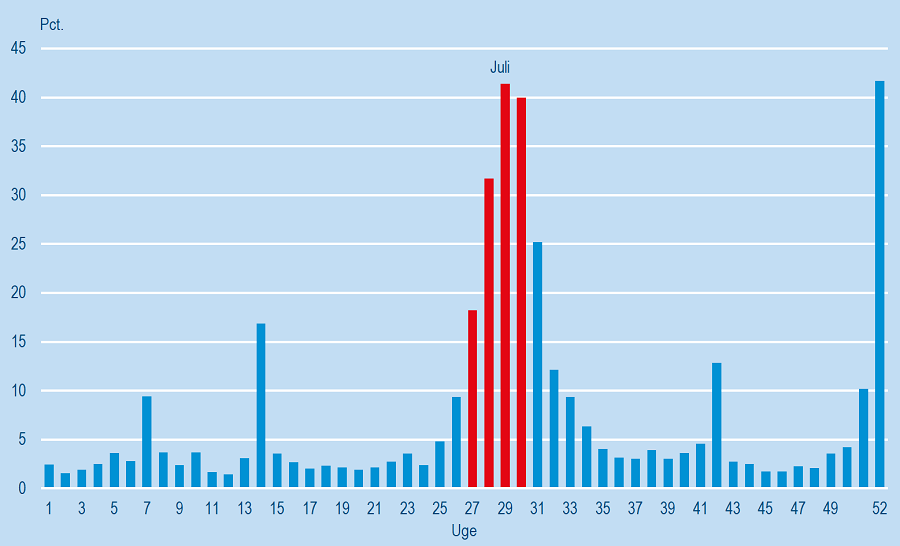 According to Danmarks Statistik, nearly 40 percent of all employed Danes take time off in weeks 29 and 30 – or, as I would explain to anyone but the Scandinavians, in July. These are the traditional “industrial holidays.” Schools are shut, and many workplaces either slow down or close altogether. By law, everyone is entitled to three consecutive weeks off between May and September. Most people take that time during the summer. Holiday pay is set aside throughout the year in a dedicated fund. Subscription-based payments, including tax instalments, are often paused in June, which is meant to make it easier to afford time off. Even people on unemployment benefits are allowed to pause job applications and job centre meetings.