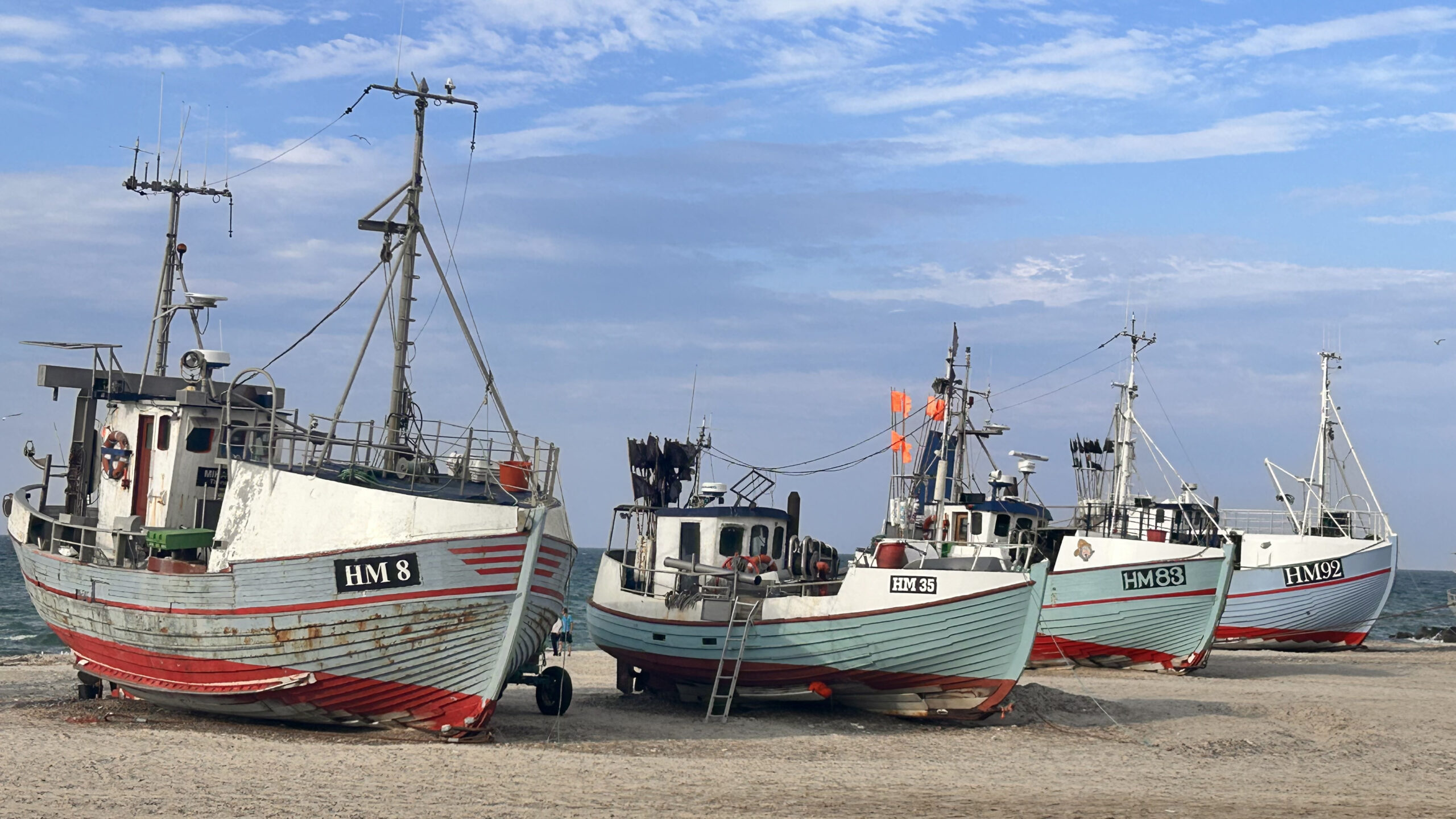 Day 2 was time to explore the local area around Slettestrand. We took a morning run down to the beach and a dip in the sea. Bonus was there were more fishing boats on the beach. Less of a bonus was the uphill run back to the hotel–at one point we even passed by an extremely old man on a pushbike who was barely cycling faster than we were ‘running’ but still managed to leave us behind.