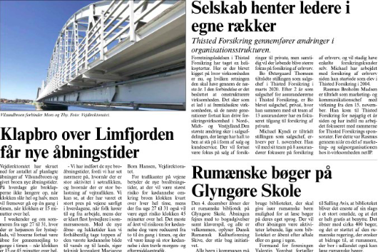 La 4 decembrie se deschide o bibliotecă românească la Școala Glyngøre. Deschiderea va fi sărbătorită cu două lansări de cărți și interpretare la pian, iar toți sunt bineveniți, conform Asociației Culturale Danezo-Române Skive, care stă în spatele acestei inițiative. Toți copiii din comună pot utiliza biblioteca, care are scopul de a oferi în special copiilor români posibilitatea de a citi cărți în limba lor maternă. După deschidere, vor exista activități continue, iar biblioteca va fi deschisă pe bază de programare sau o dată pe săptămână.