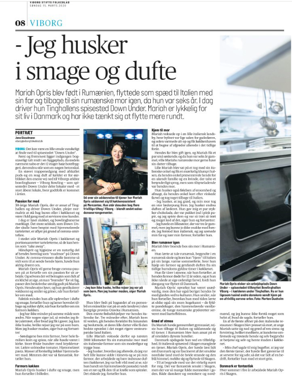 Maria Opris iubește locul ei de muncă la Down Under – restaurantul din subsolul bowlinghall Viborg – sub Tinghallen. Acum, la fel ca alte mii de danezi, a fost trimisă acasă într-o concediu forțat din cauza pandemiei de COVID-19.