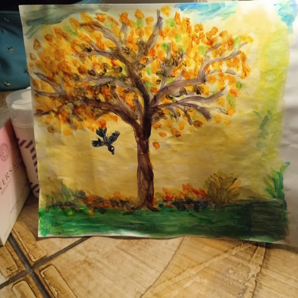 It’s no secret that art and art therapy can support the mental health and well-being of people displaced due to a military conflict. But art can also provide a vehicle for self-development and personal expression, in addition to the numerous benefits of using art as a therapeutic technique, as exemplified by “The Bright Colors of Autumn”.
